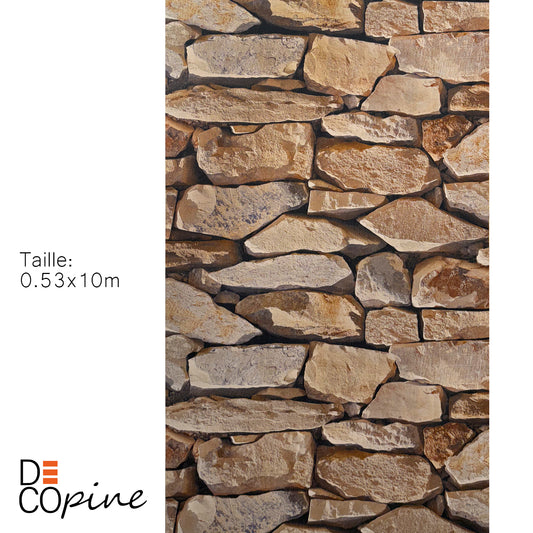 Papier Peint Effet Pierre Naturelle – Tons Beige et Marron – 0,53 x 10m – Style Rustique