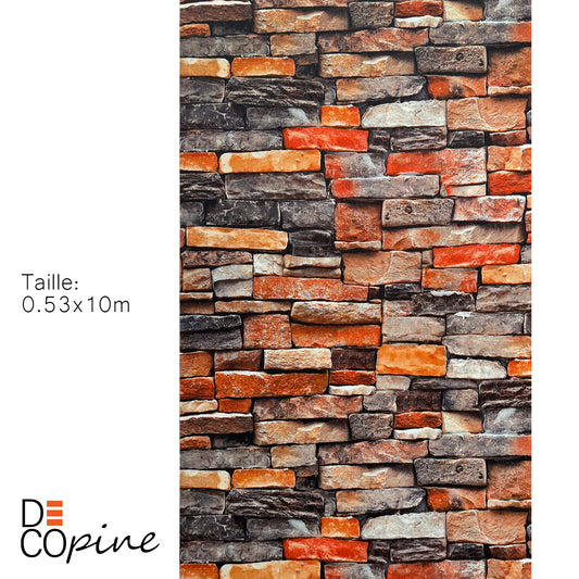 Papier Peint Effet Brique Industrielle – Rouge & Gris – 0,53 x 10m – Pose Facile